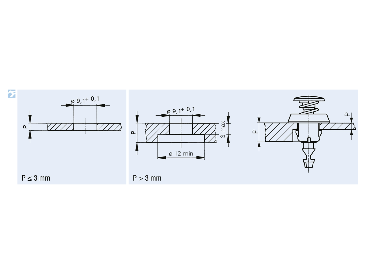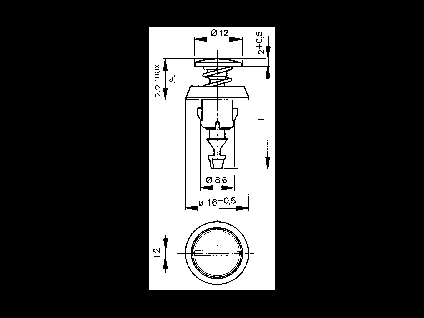 > 推转式扣件 一字穴头, 黑色塑胶(POM)弹簧盖1