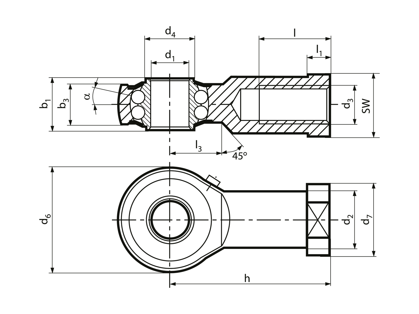 杆端轴承螺丝 整体自调球型轴承 右牙